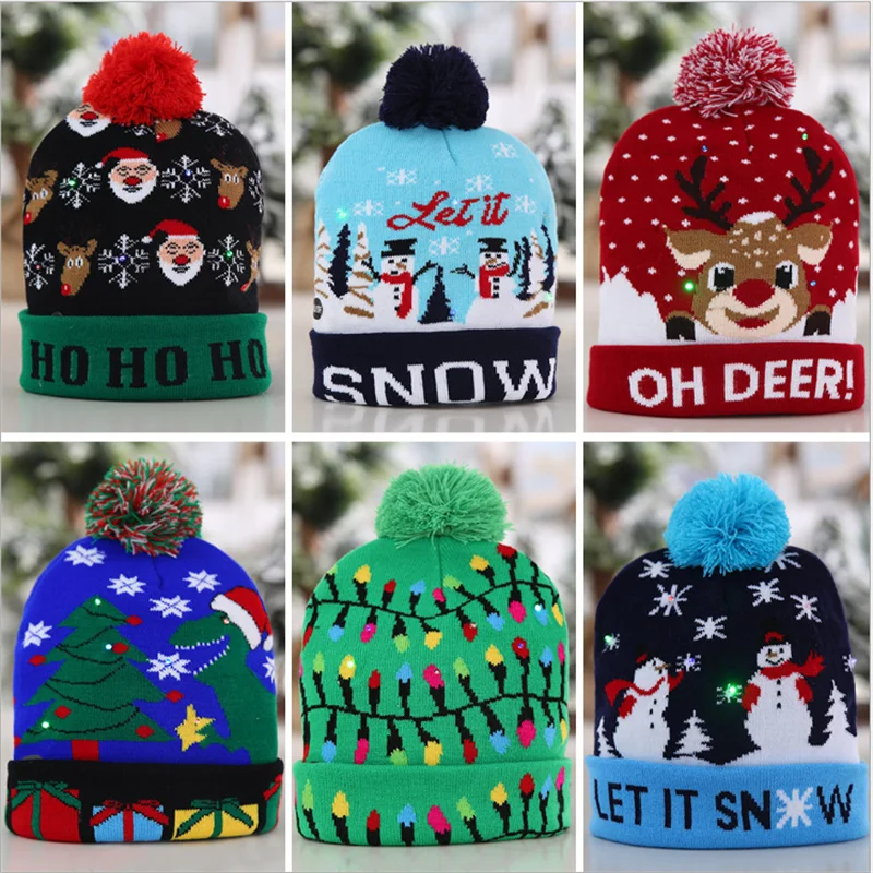 Светодиодные лампы, цветные светящиеся рождественские украшения, Детские вечерние шляпы, зимние теплые шляпы для взрослых, рождественские украшения