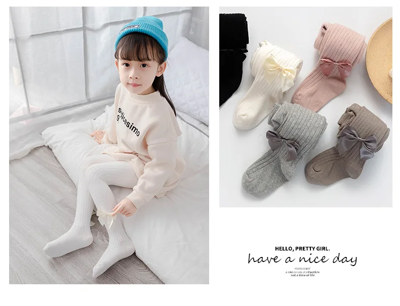 Колготки с бантом для маленьких девочек, хлопковые колготки в Верти...
