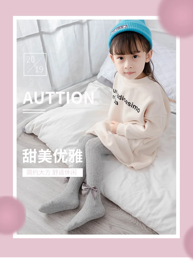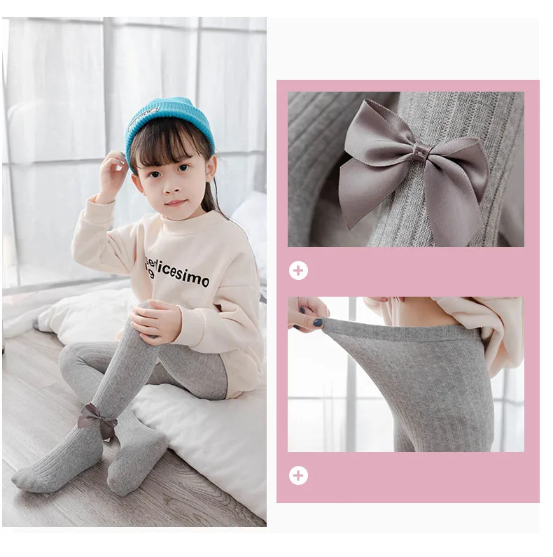 Милые колготки с бантом для девочек, трикотажные хлопковые детские ...