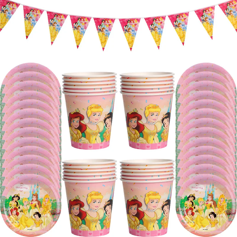 Набор одноразовых столовых приборов, бумажные баннеры с изображением Золушки, снежно-белоснежной принцессы, 38 шт.лот, праздвечерние чные украшения