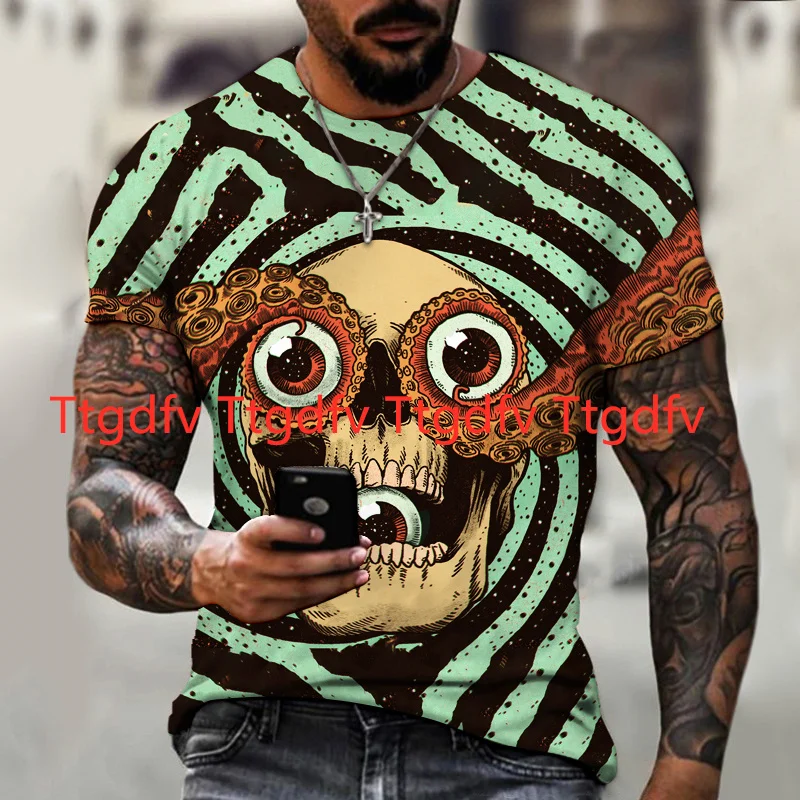 Новинка 2021, мужские футболки с 3D-принтом черепа и рисунком, Лиде...