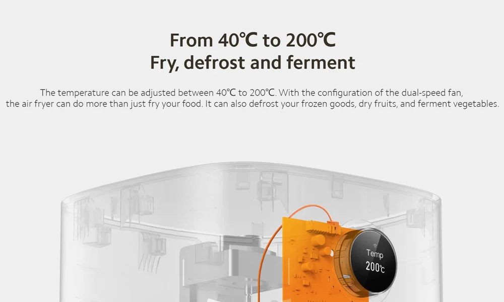 Примечание: экран и дисплей фритюрницы являются китайскими, но фритюрница может быть соединена с приложением mihome, которое является несколькими лаугуациями, после подключения к приложению mihome, вы можете управлять фритюрницей с помощью телефона.