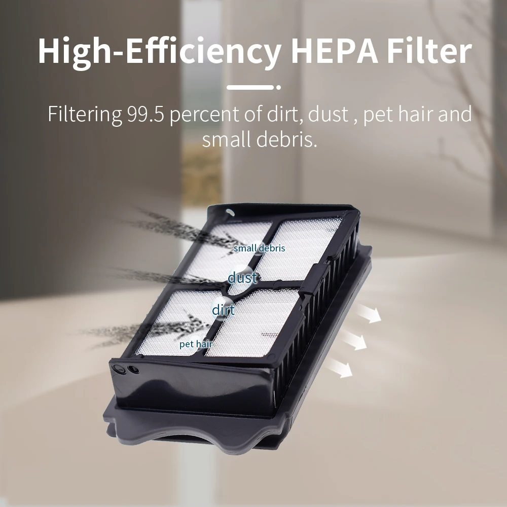 1) фильтр HEPA-style использует HEPA материал E12 и улавливает до 99.5% пыли, аллергенов и частиц.2), превосходный выбор волос домашних животных, грязи, пыли и мусора и работает на типах пола-лиственных пород, ковров и плитки.3) детали и аксессуары изготовлены из экологически чистых материалов и почти не требуют технического обслуживания.4) чтобы ваш робот работал на пике производительности, рекомендуется заменять детали каждые 2-3 месяца.5) его легко заменить и установить на робот-пылесос.