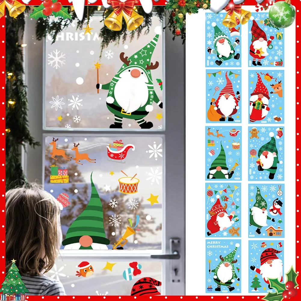 Рождественские, оконные, на стекло электростатические наклейки, рождественские украшения в виде деда мороза, новогодний декор, украшение для вечеринки