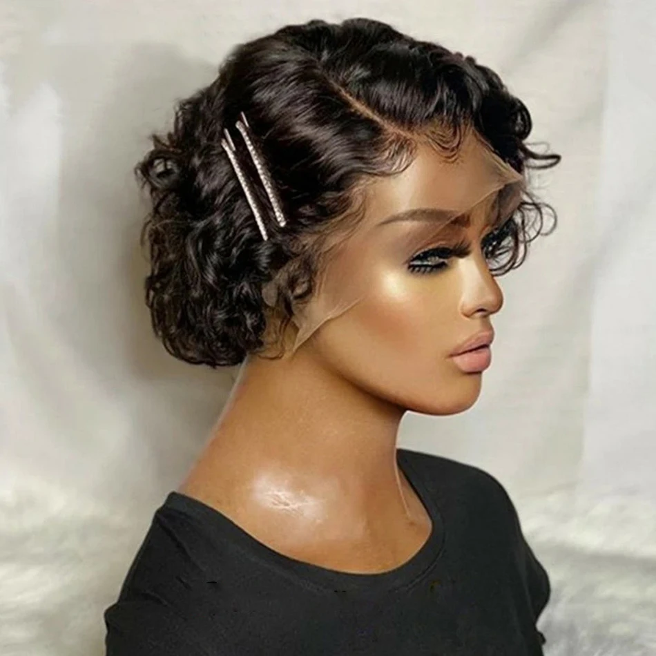 Парик фея, парики из человеческих волос, плотность 250%, Короткие в...