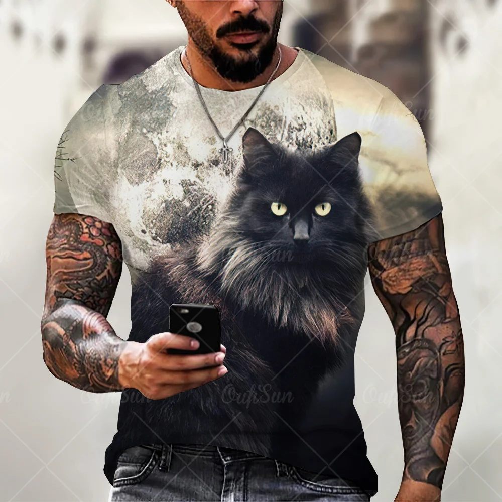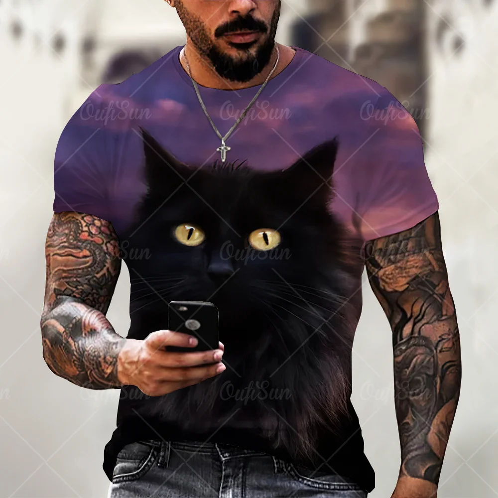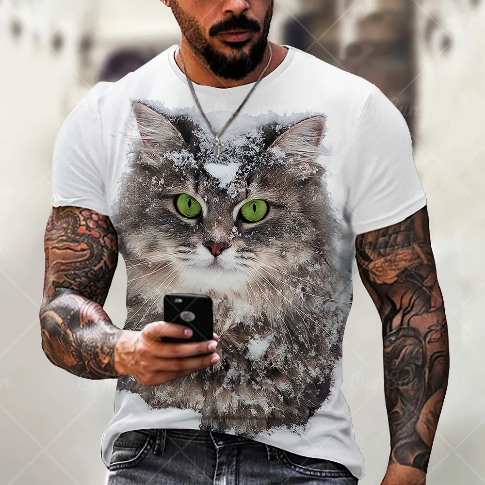 Модная футболка унисекс с 3D-принтом милого и очаровательного кота, модель 2021 года, летняя уличная мода, свободная модель большого размера