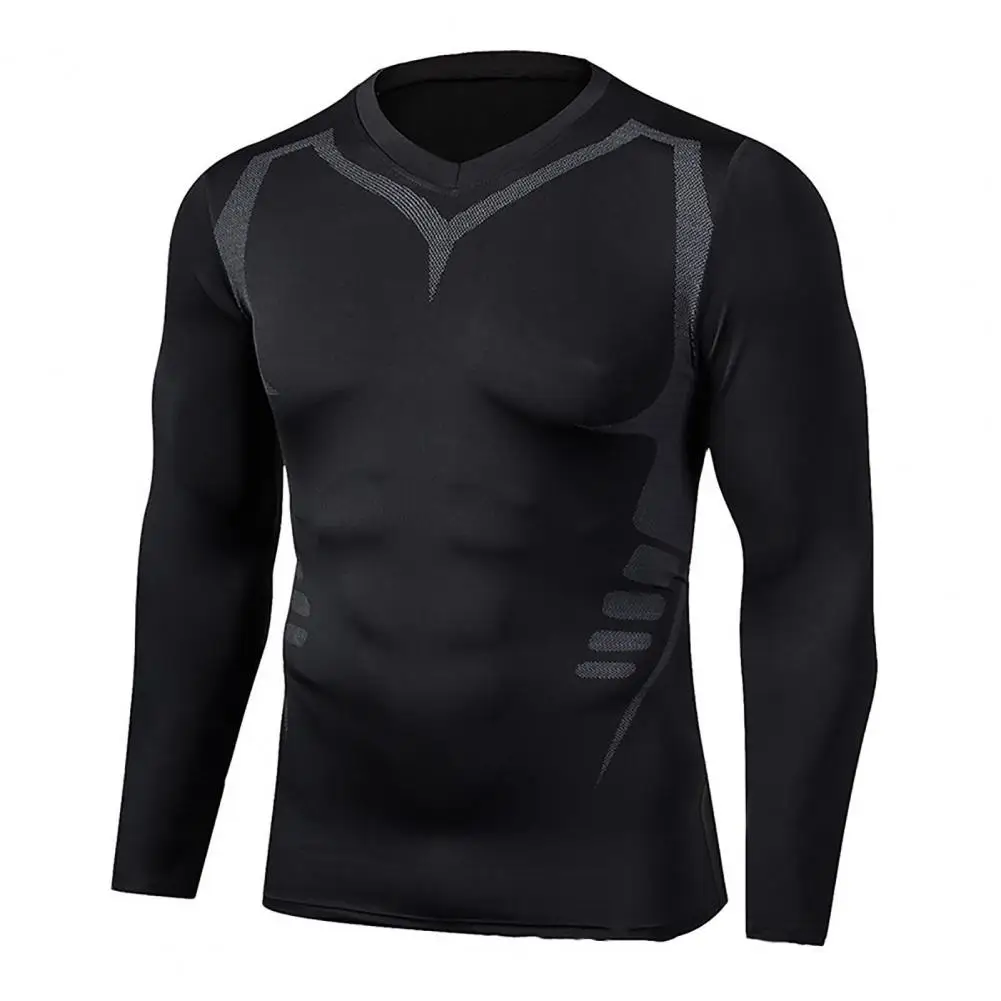 Спортивная футболка контрастного цвета впитывающая пот Мужская эластичная быстросохнущая обтягивающая футболка пуловер для фитнеса