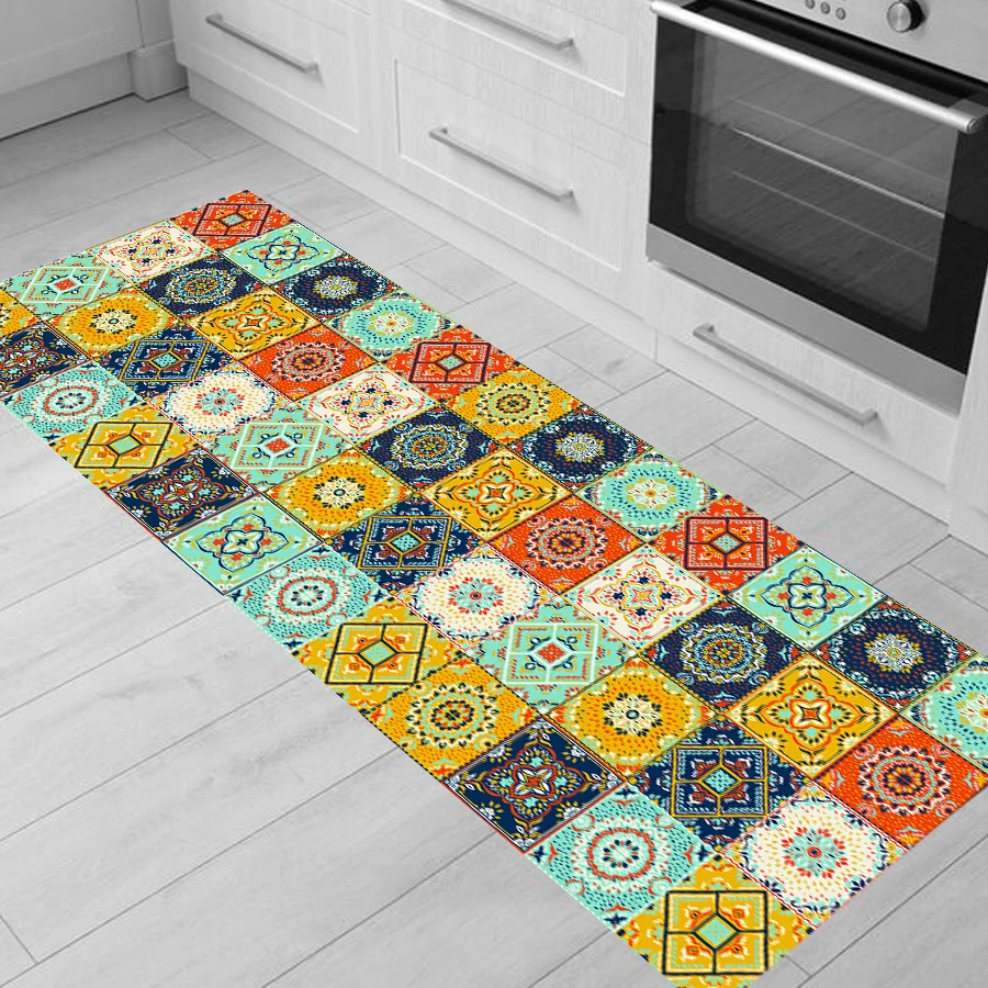 Ковер для кухни в богемном стиле с мандалой, нескользящий напольный...