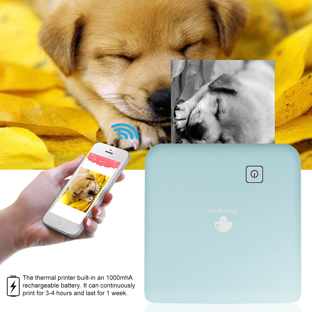 Термопринтер Bluetooth легко подключается к мобильный телефон или iPad через Bluetooth 4,0. Система для IOS 8 и Android 4,4 или выше. Вы можете использовать ваши смартфоны для печати того, что вы хотите сразу. Печать высококачественных фотографий.