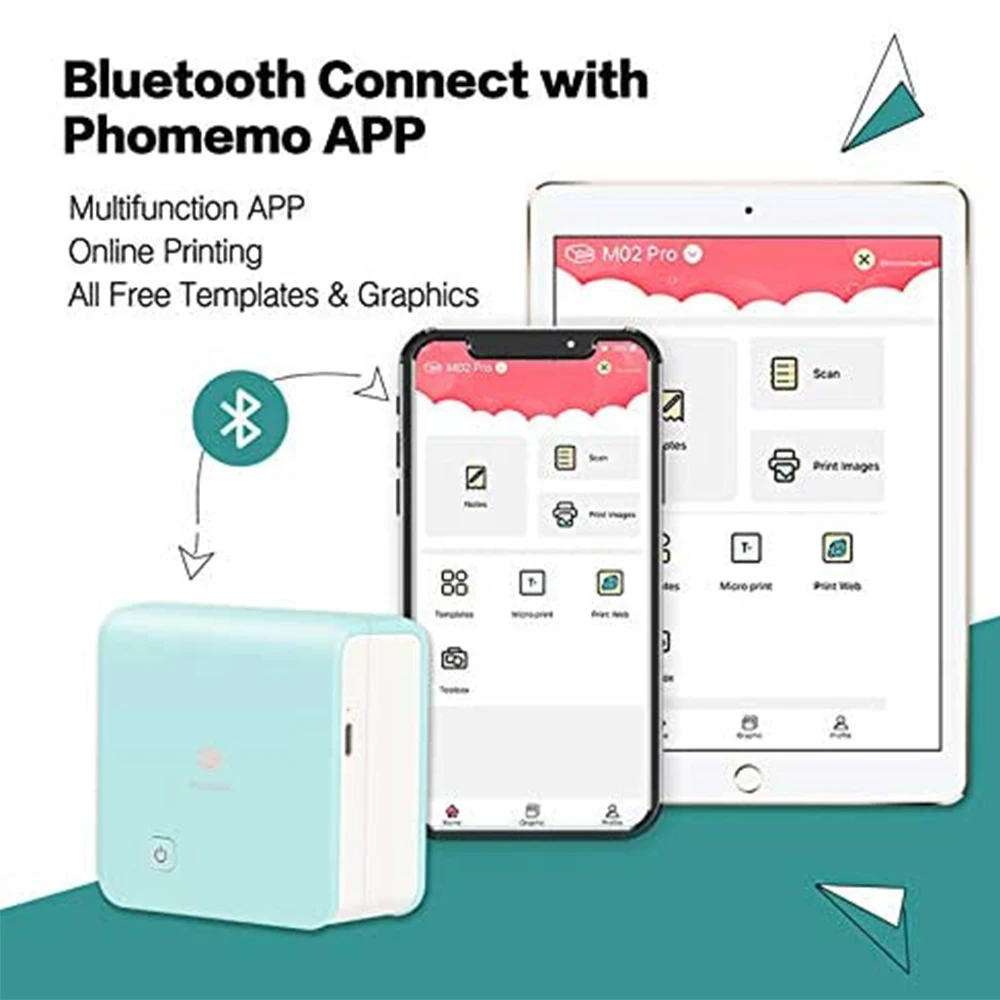 Phomemo 300 точек/дюйм карман для мобильного принтера-M02 Pro Термальность Bluetooth совместимым Портативный мини принтер совместимый с iOS и Android, Для Фотопечати, граффити, для обучения, работыИнформация о продукте: