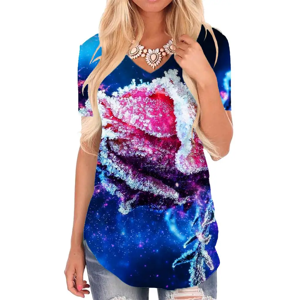 Футболка женская с принтом в виде туманности, с V-образным вырезом