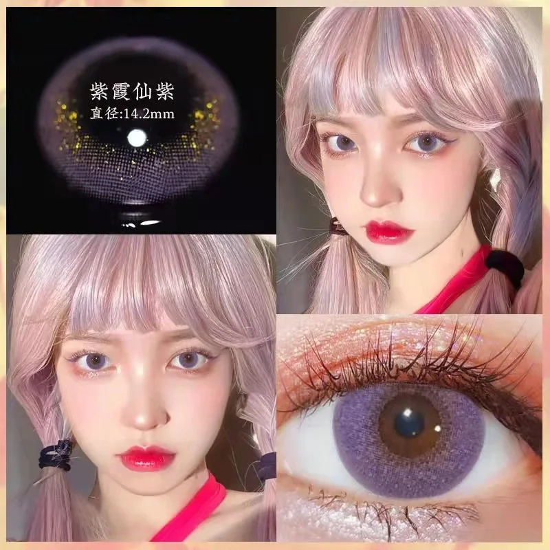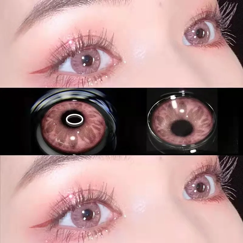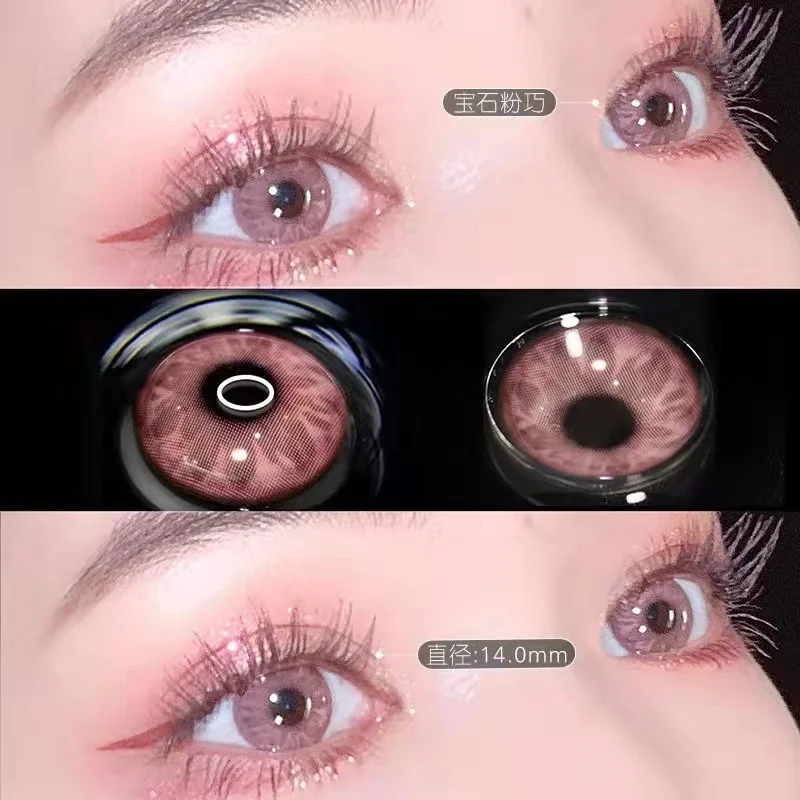 Контактные линзы для глаз 2 шт. в год, линзы для близорукости, мягкие контактные линзы для глаз розового, фиолетового цветов, косметические линзы