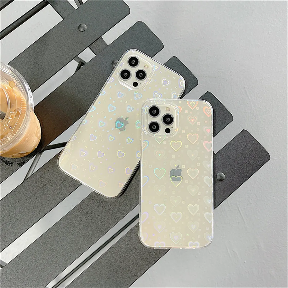 Лазерный Прозрачный чехол для телефона с любовным сердцем для iPhon...