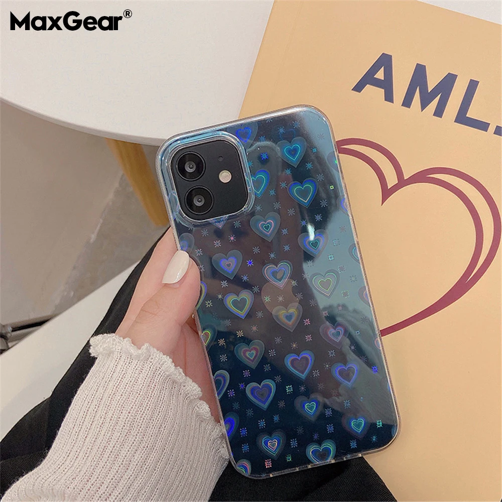 INS простой лазерный чехол Love Heart для iPhone 12 11 Pro Max XR X XS 7 8 Plus SE2 прозрачный градиентный цветной Жесткий Чехол для задней панели из поликарбоната