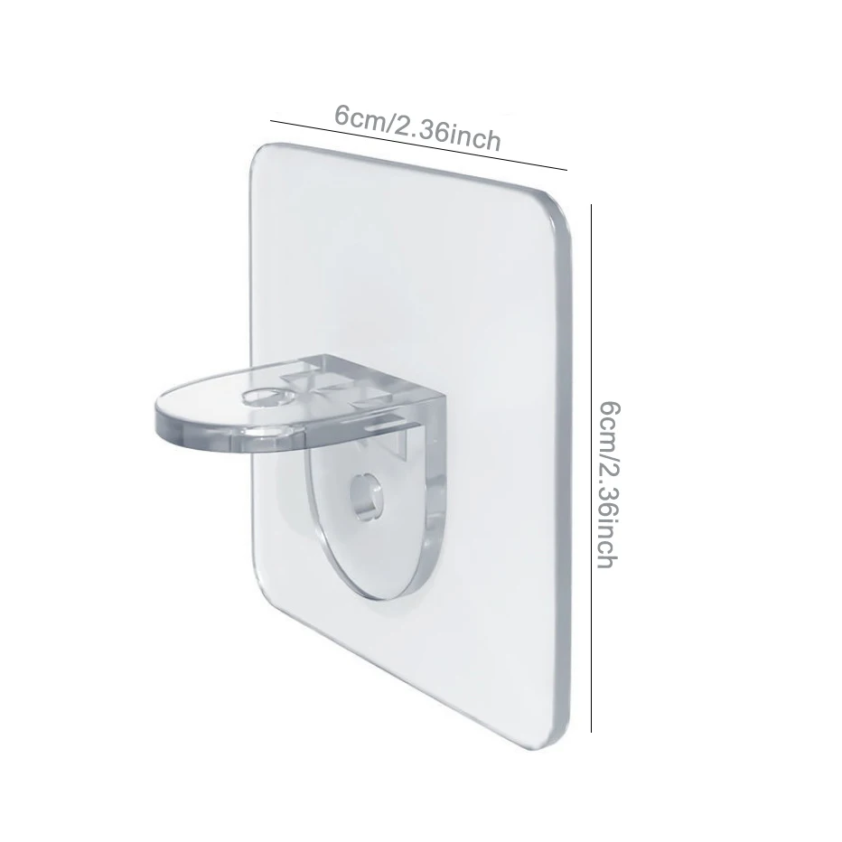 Продукт: приклеиваемые прищепки для полки Цвет: прозрачный Материал: пластик Размеры: 6*6 см/2,36*2,36 дюймов Количество: 4/12 шт Использование для: поддержка полки/вместо гвоздей Посылка включает в себя: 1 комплект прищепки для полки