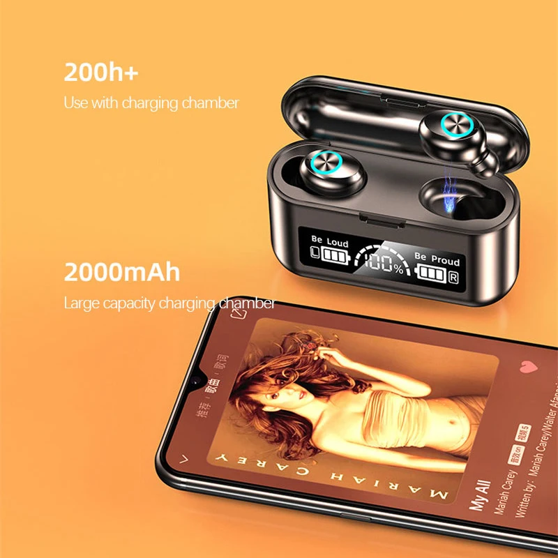 TWS-стереонаушники F9 с зарядным футляром, 5,2 мА ч