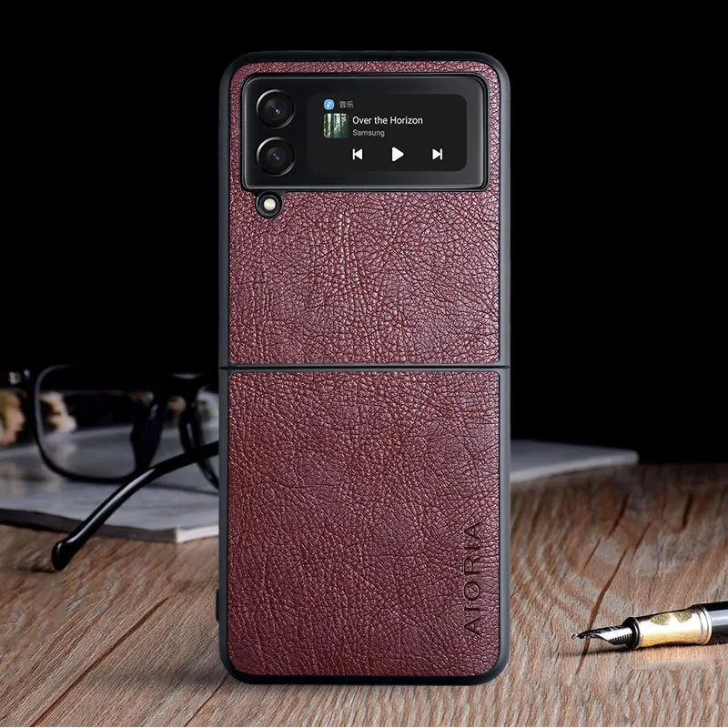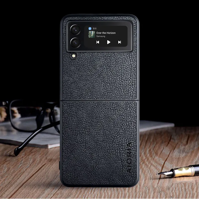 Деловой кожаный чехол для телефона с зернистой фактурой для Samsung Galaxy Z Flip3 5G Flip 3, матовый тонкий чехол Coque