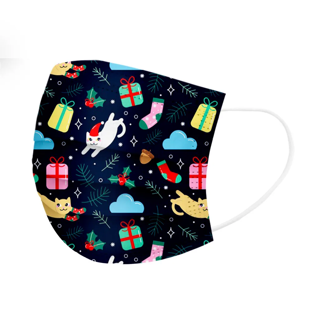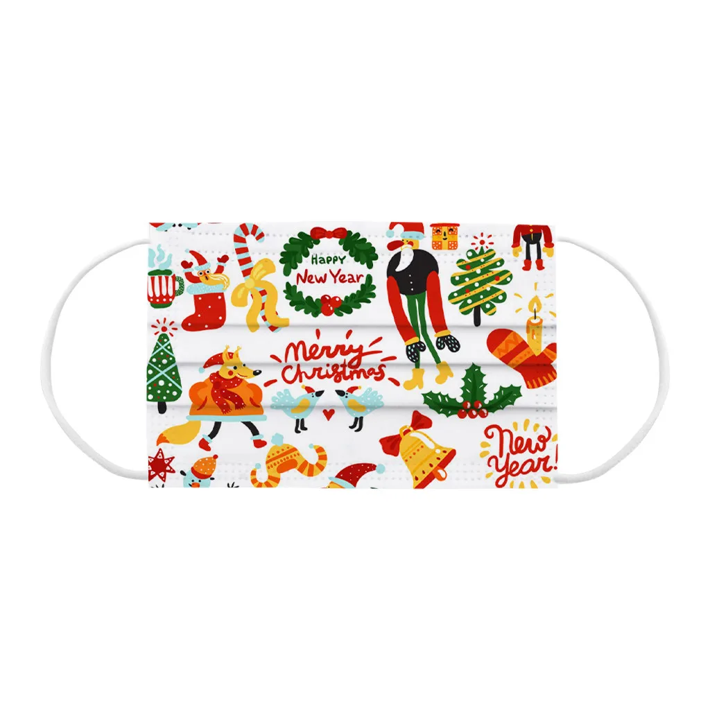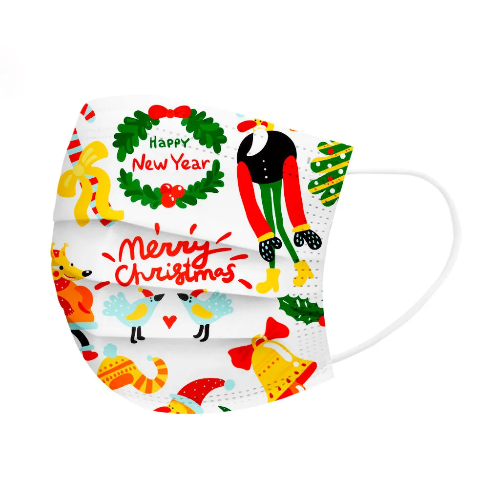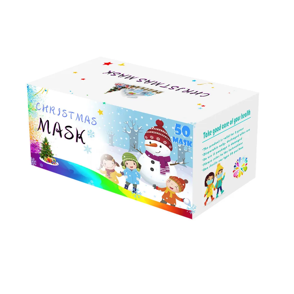Детская маска одноразовая Рождественская маска для лица промышленная 3-слойная Ушная петля 50 шт.