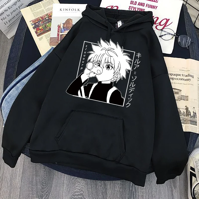 2021 толстовки Zoldyck с черным рукавом Kawaii Hunter X Hunter мужские женские толстовки Killua Bluzy Топы свитшот большого размера