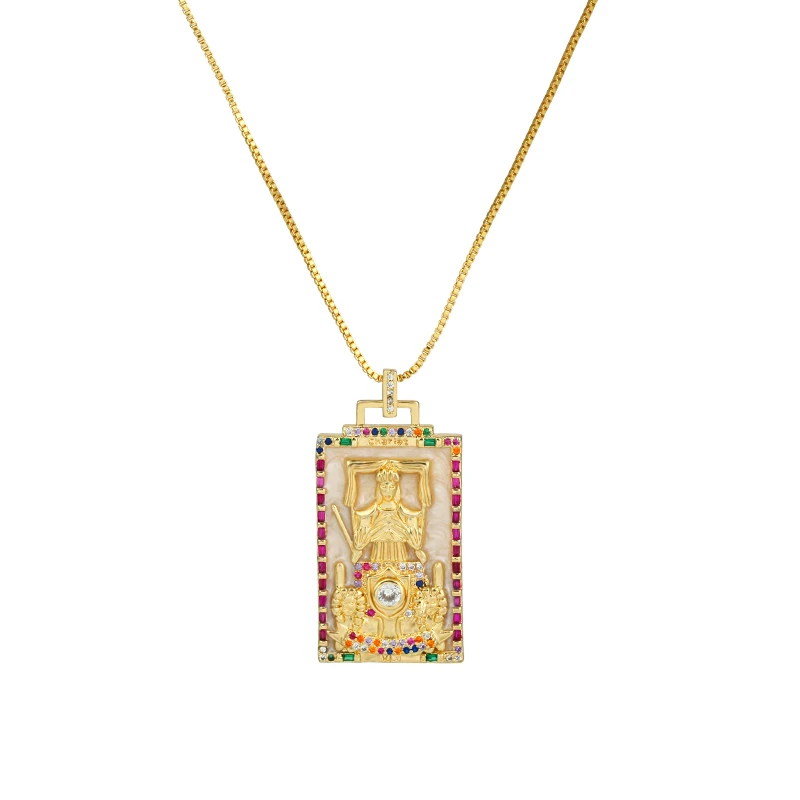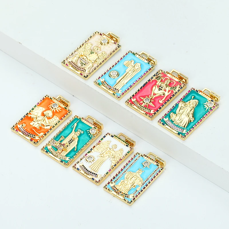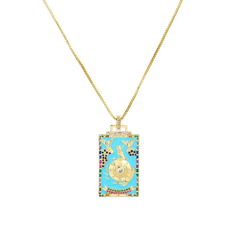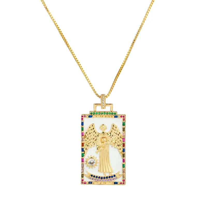Эмалевое ожерелье с подвеской Таро для женщин, ожерелье для религиозных женщин, циркониевое ожерелье, солнце, луна, темный демон, ангел, медная цепочка со змеей, ожерелье