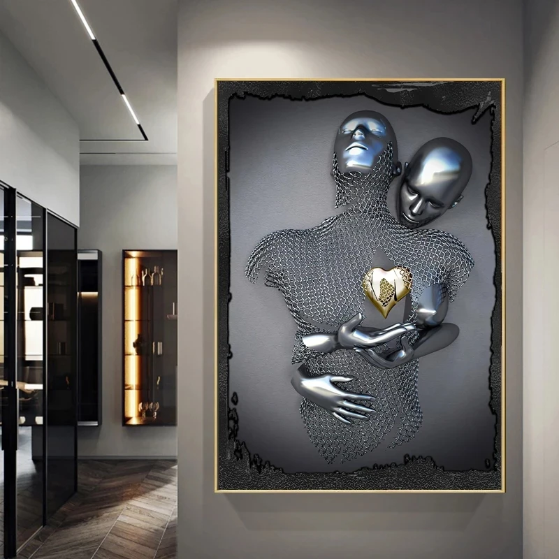 Абстрактная Металлическая фигурка, художественные плакаты, Современная Скульптура для влюбленных, картины на холсте, настенные искусство, картинки, на стену, Декор, художественное оформление, подарок