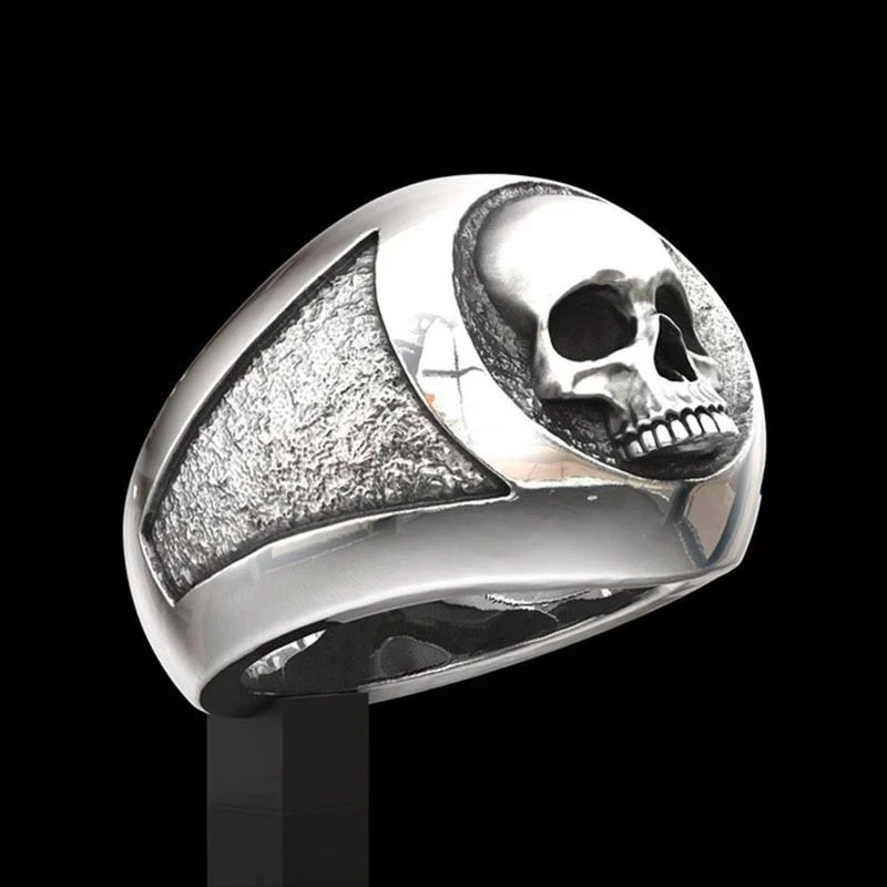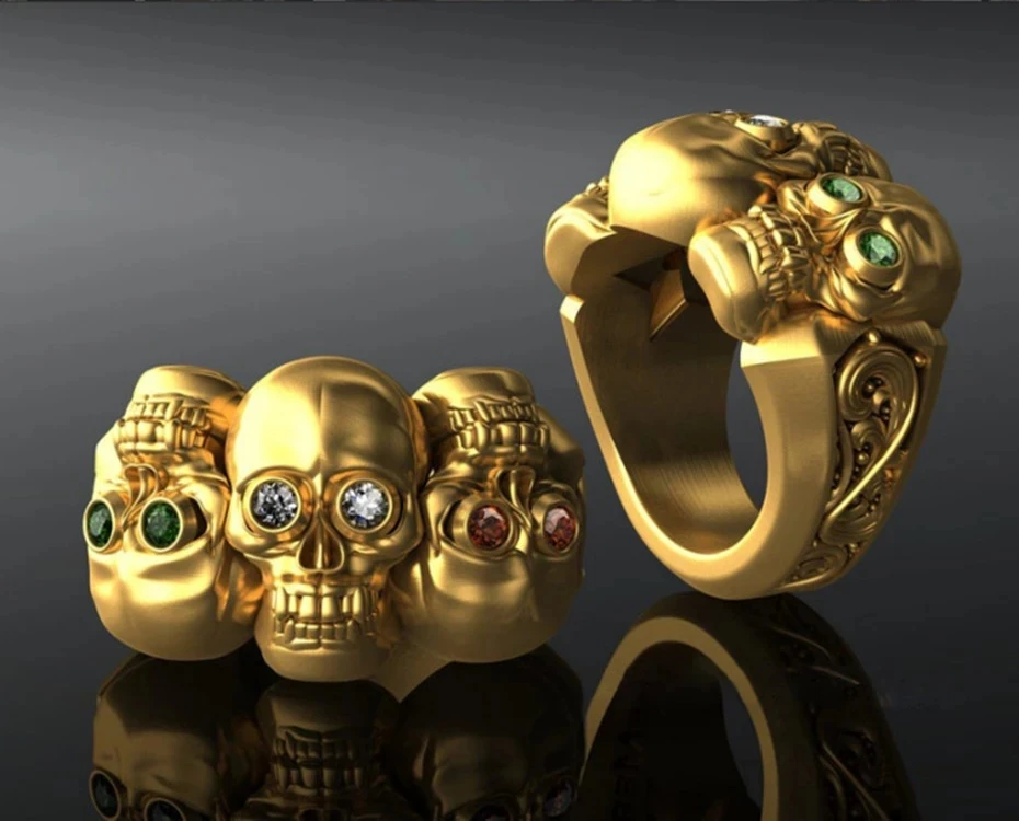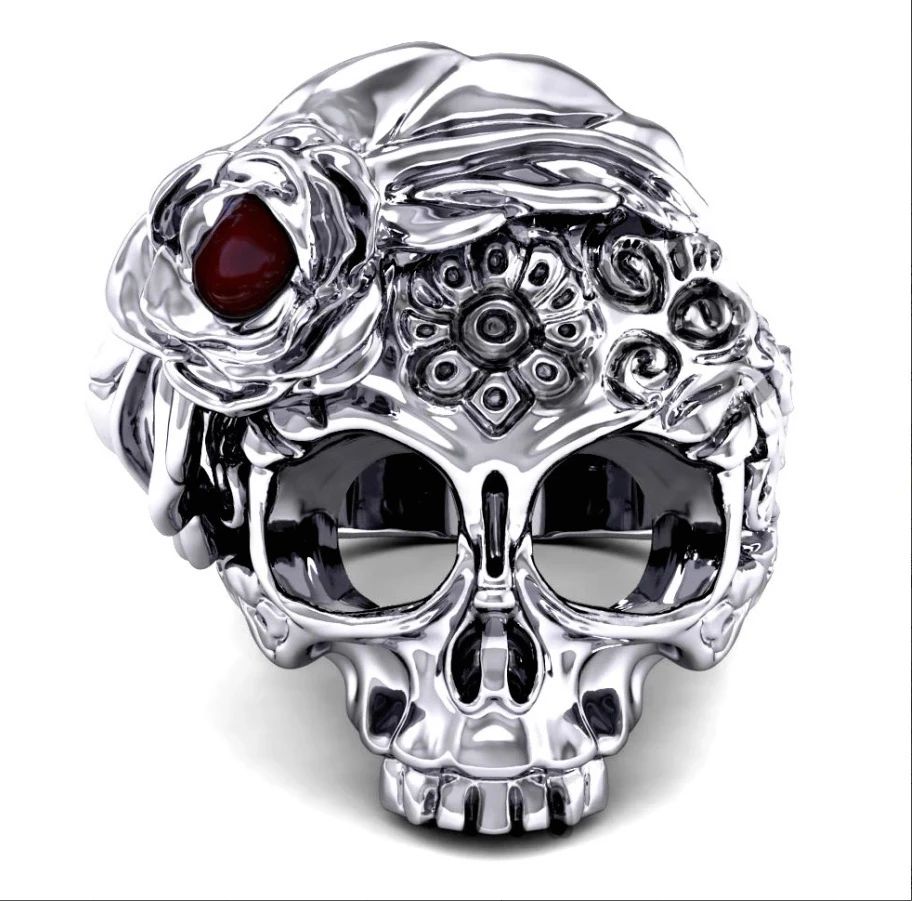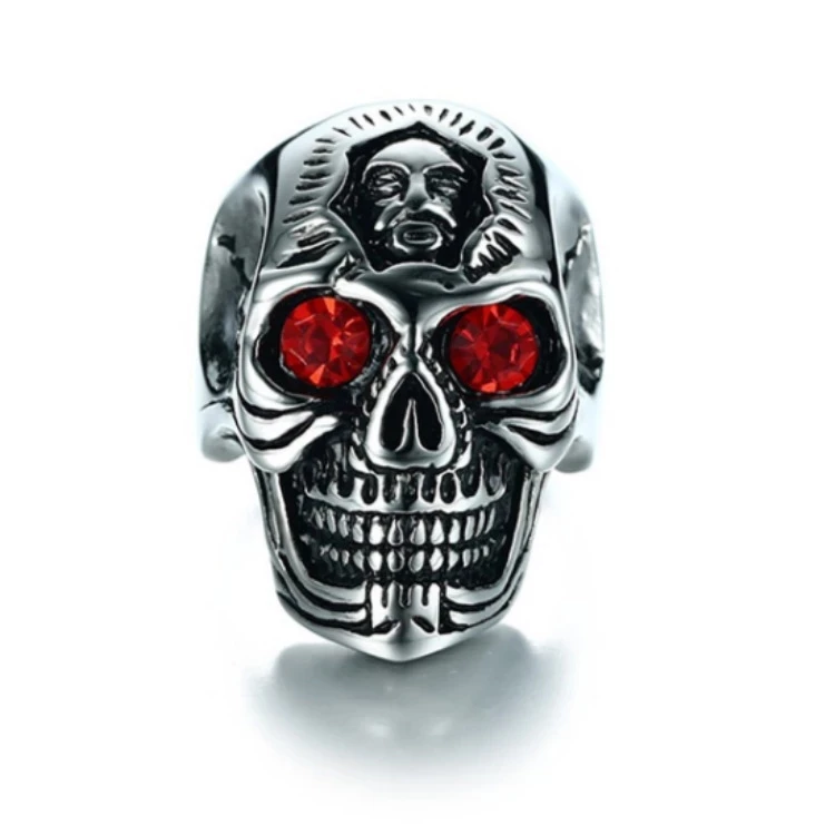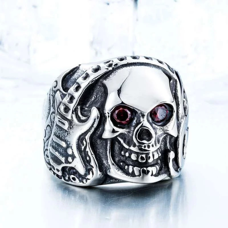 Мужское кольцо в готическом стиле, с черепом и красными глазами