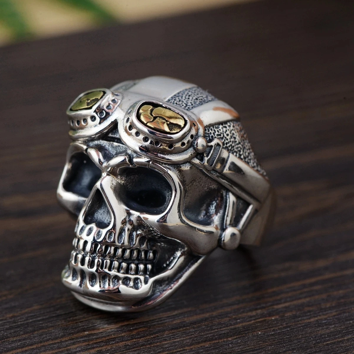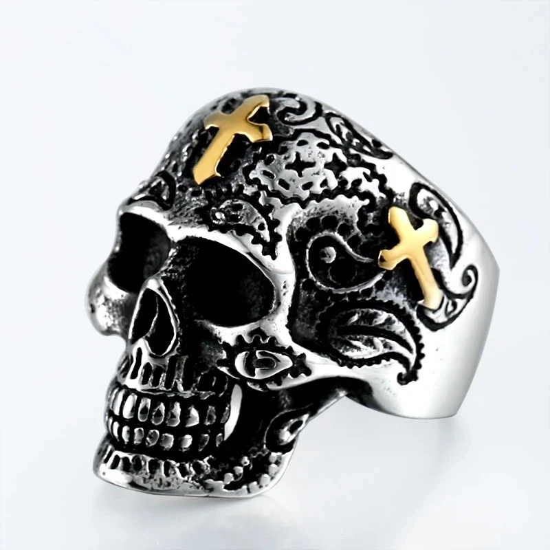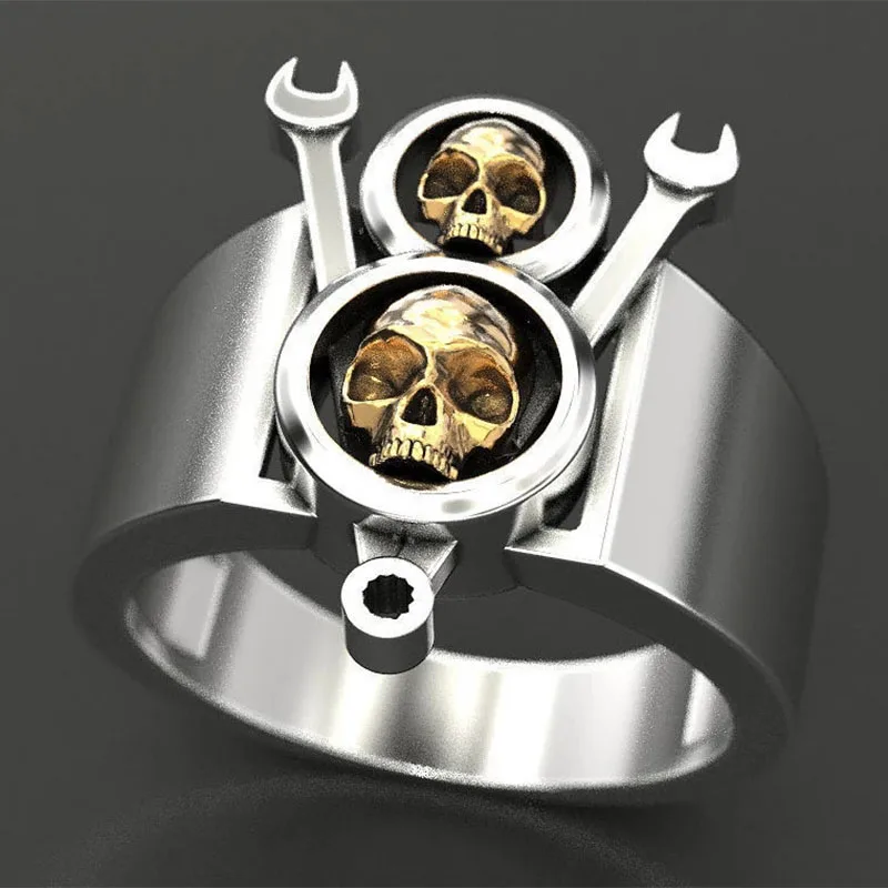 Кольцо мужское, в стиле панк, с резным золотым черепом, морским мон...