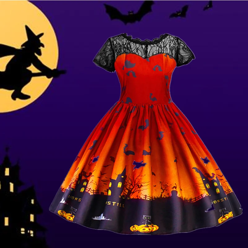 Новинка 2021, платье для девочек с рисунком на Хэллоуин, повседневн...