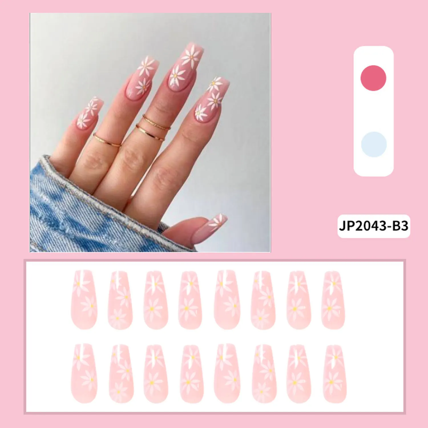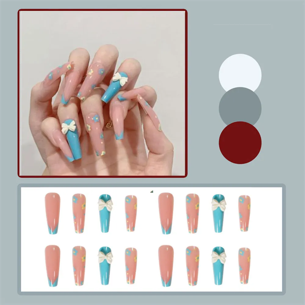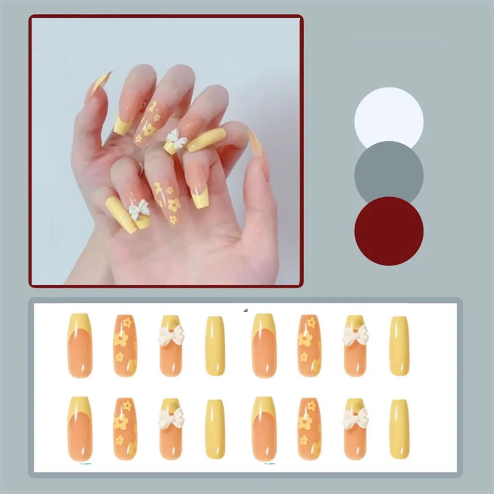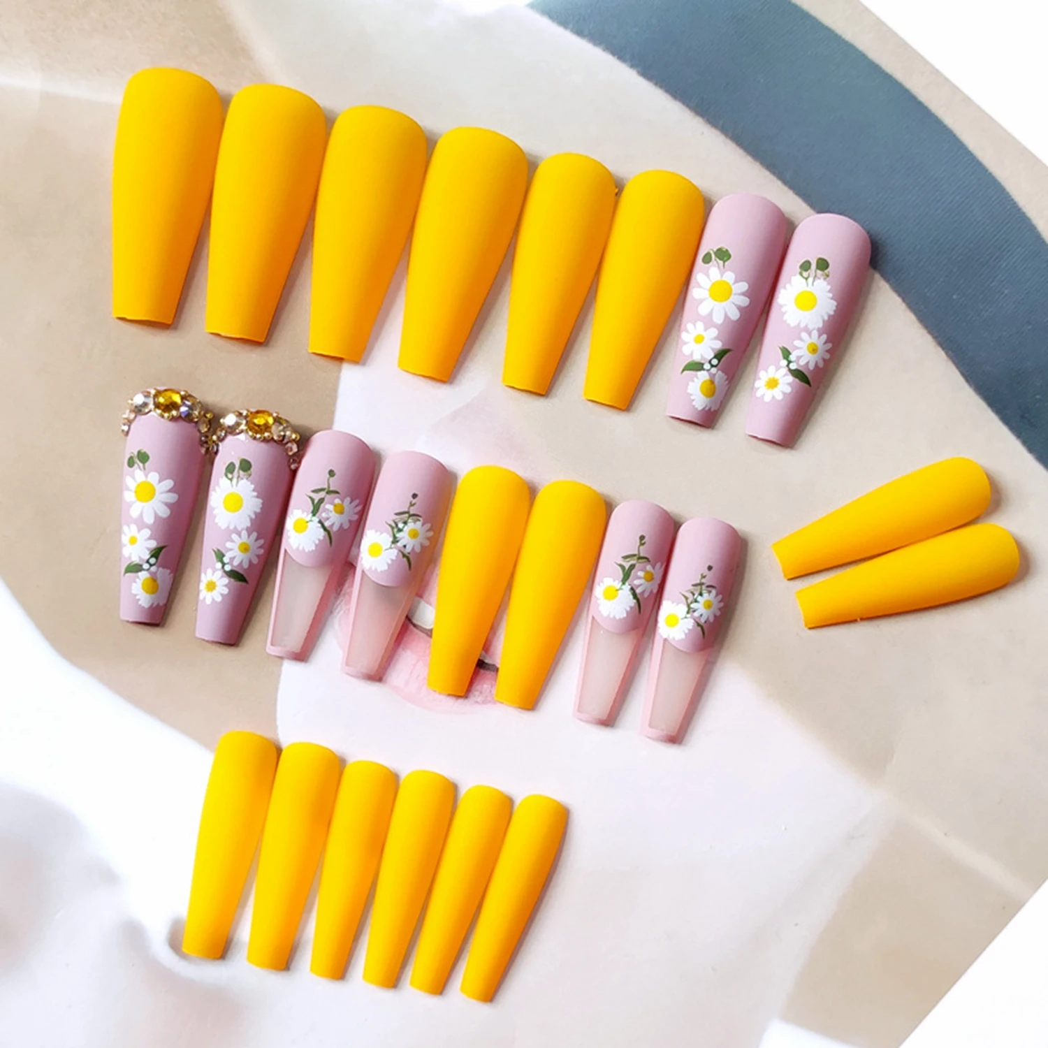 Сверхдлинные накладные ногти в гробе, 24 шт., накладные ногти в виде Желтых Цветов, накладные ногти в стиле балерины, накладные ногти с полным покрытием, накладные ногти