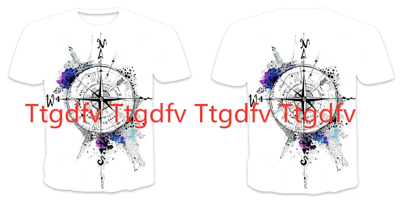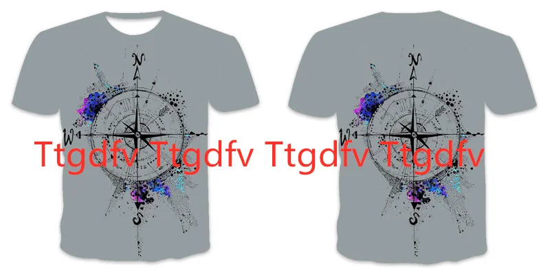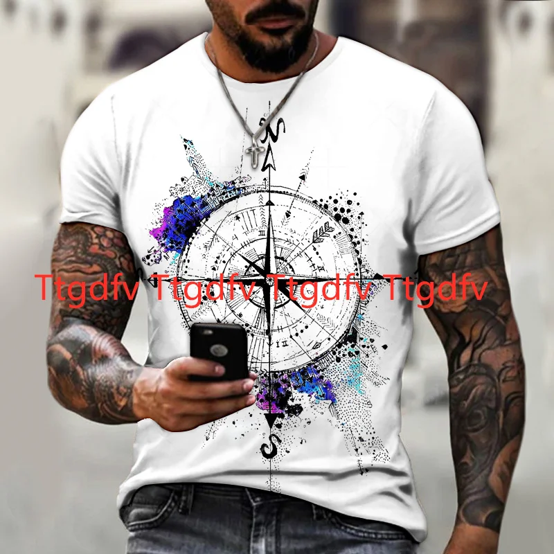 Мужская летняя футболка с 3D-принтом, с компасом и круглым вырезом