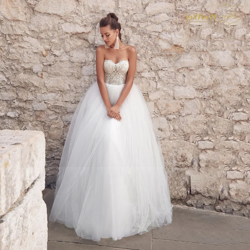 Роскошные свадебные платья с жемчугом 2020, фатиновое свадебное пла...