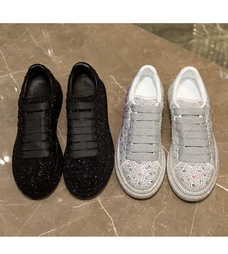 Кроссовки женские блестящие со шнуровкой, Брендовые повседневные, на белой подошве, модные уличные сникерсы с блестками