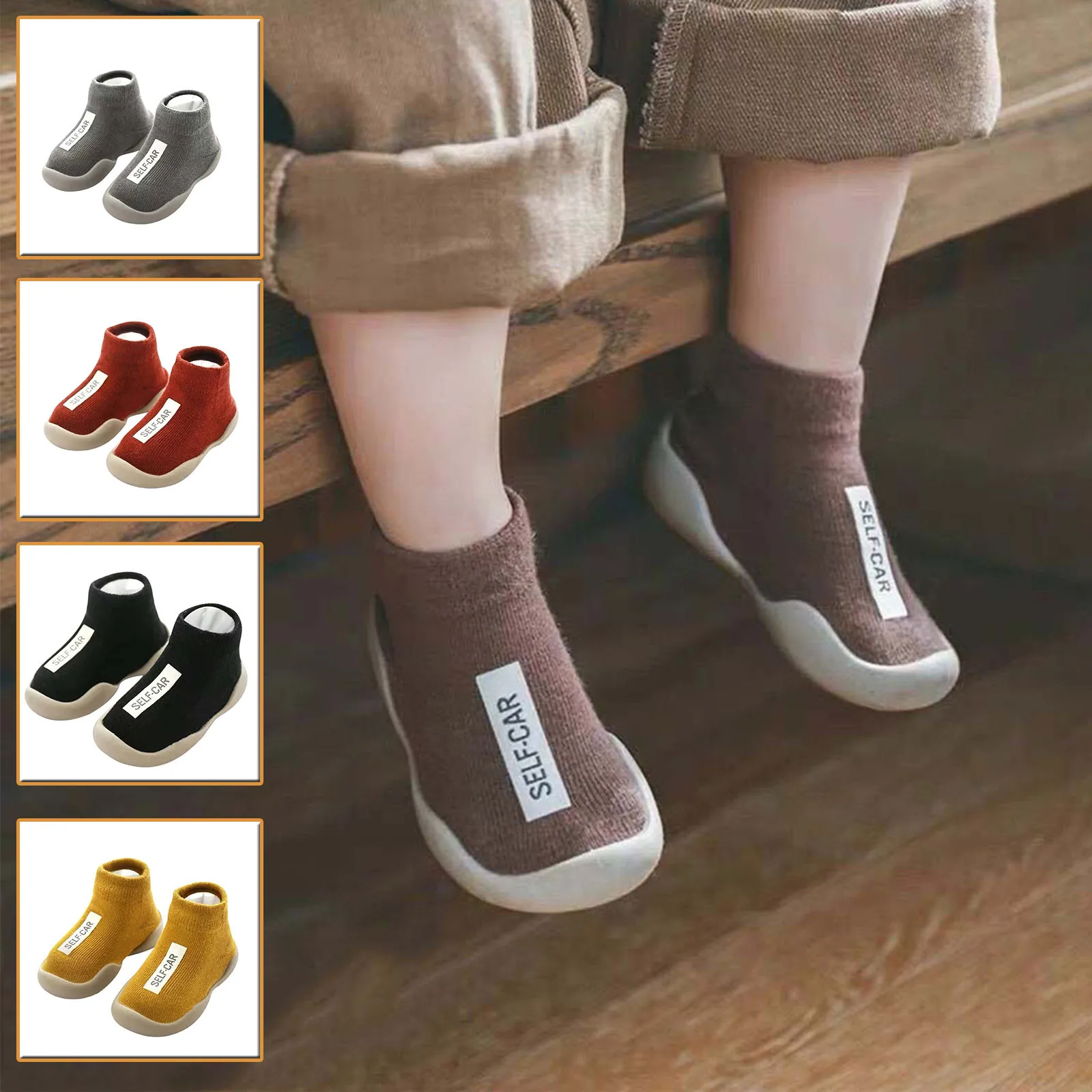 Обувь для малышей, унисекс, для малышей, ходунки, для мальчиков и девочек, детская резиновая мягкая подошва, обувь для пола, вязаные ботинки, Нескользящие