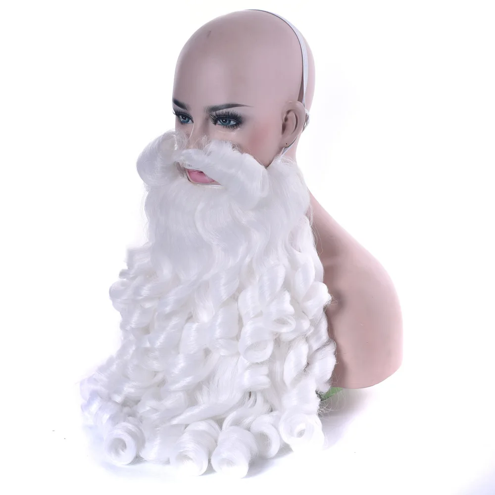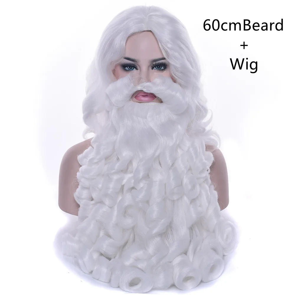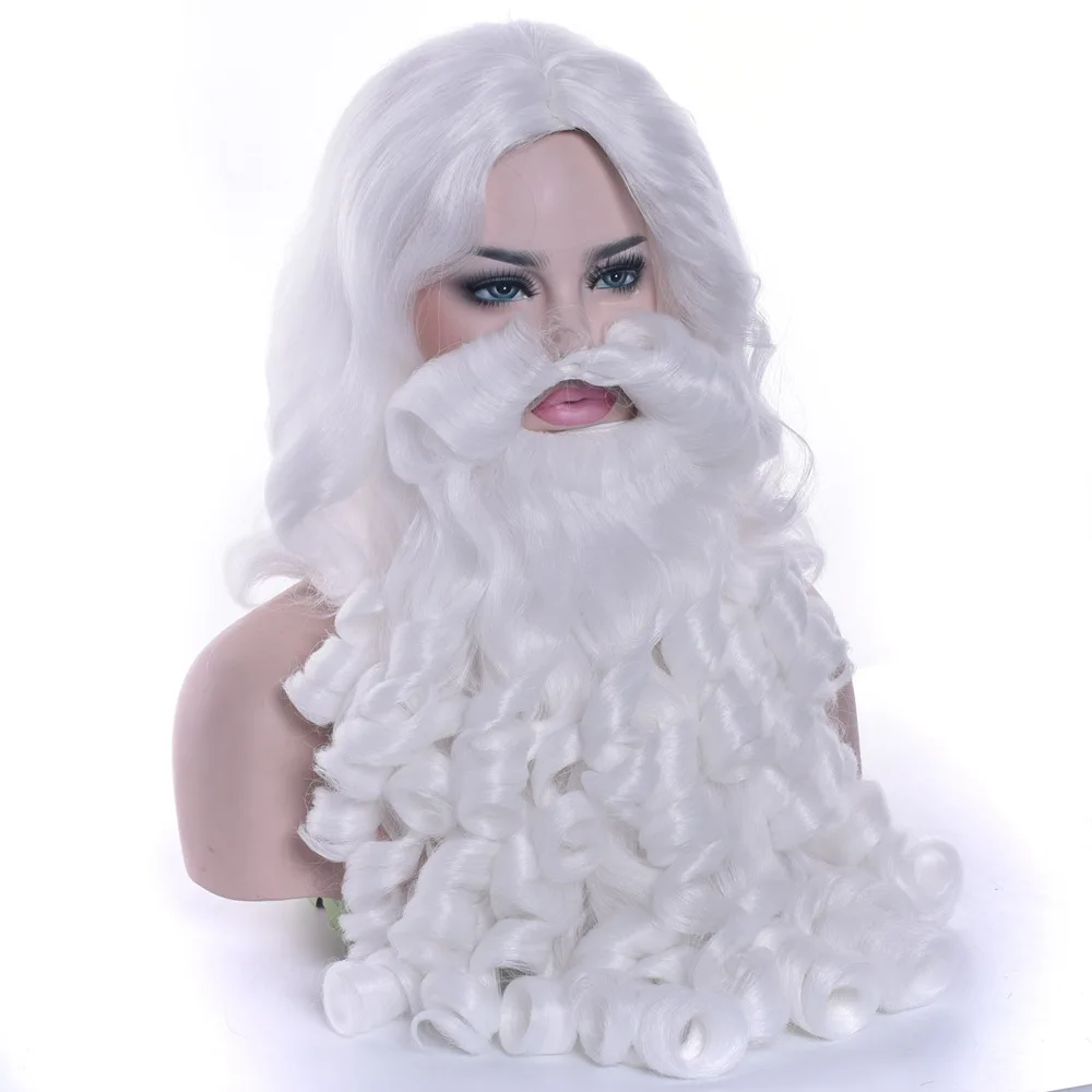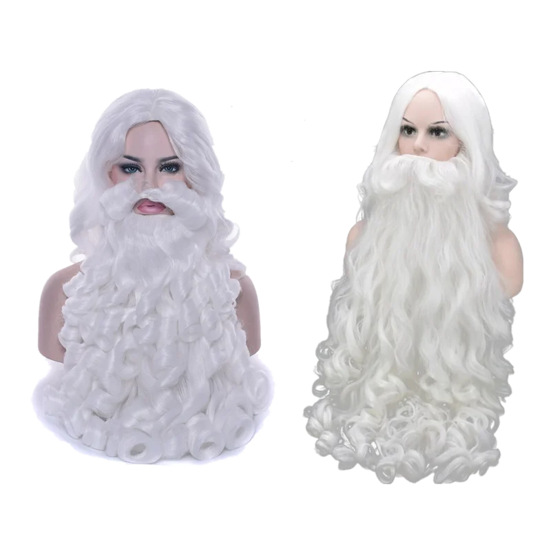 Женский Рождественский подарок, парик Санта Клауса и борода, синтетические волосы, Короткие парики для косплея для мужчин, белые аксессуары для волос, шляпа