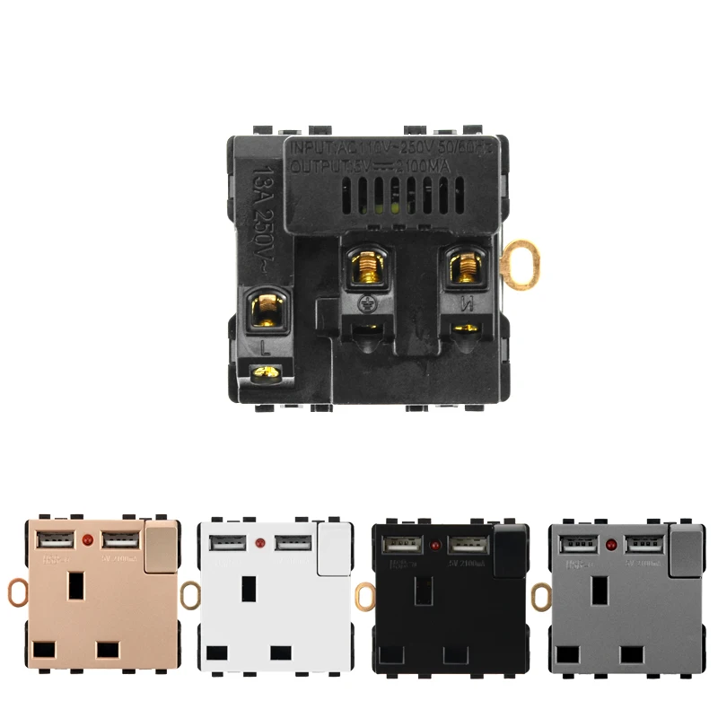 Розетка с двумя USB-портами, модульный Функциональный модуль S Series- 13A, разъем стандарта Великобритании, для самостоятельной сборки