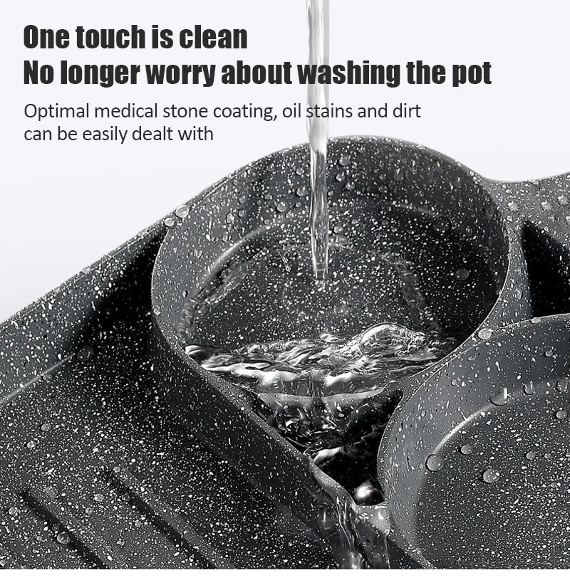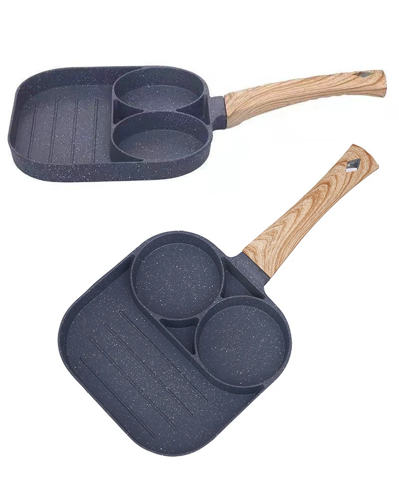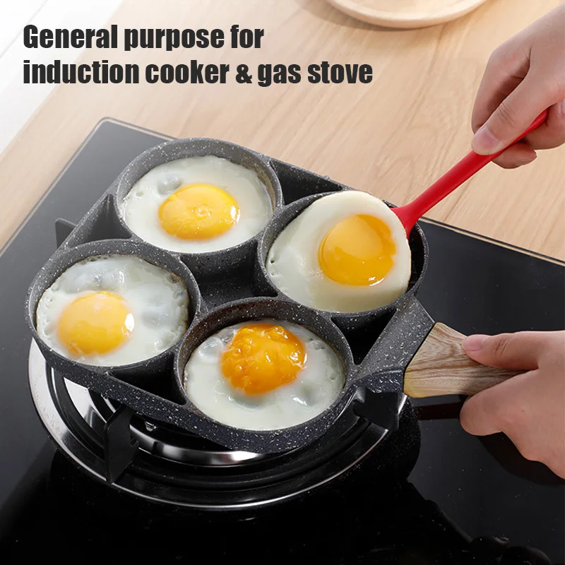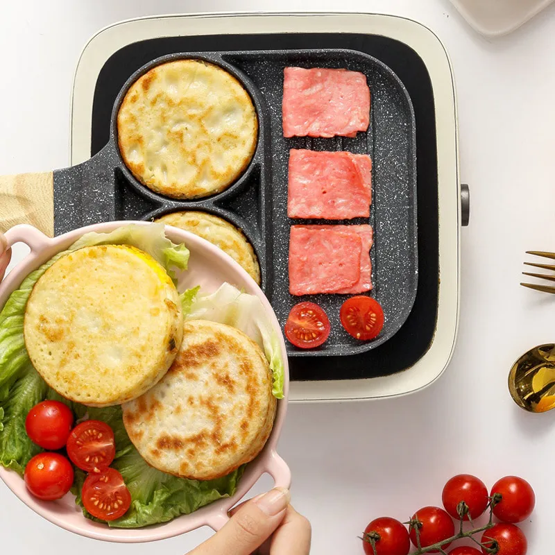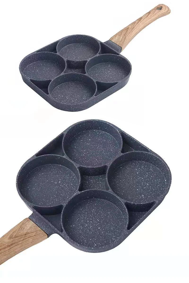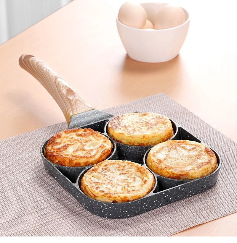 5. meerdere Doel: De pan kan worden gebruikt om omelet, burger en dergelijke, en de pan beschikt 4 compartimenten te koken snel en eenvoudig.