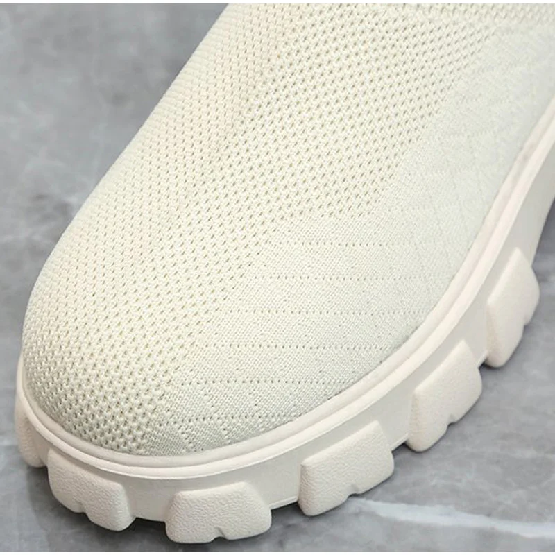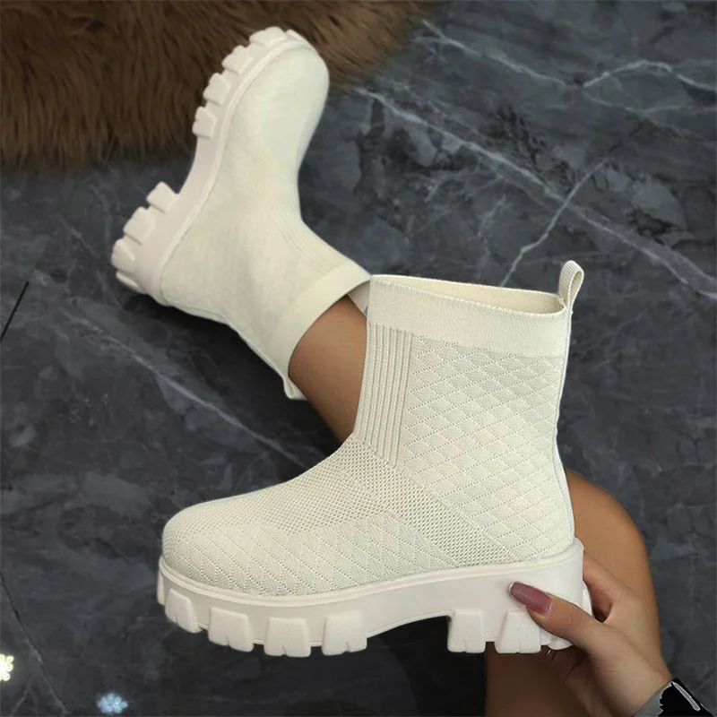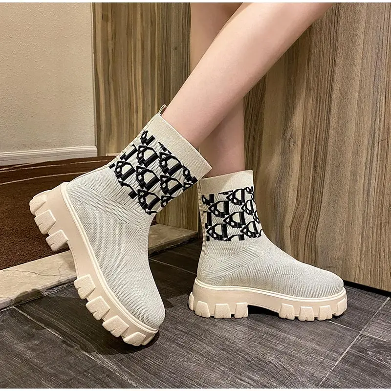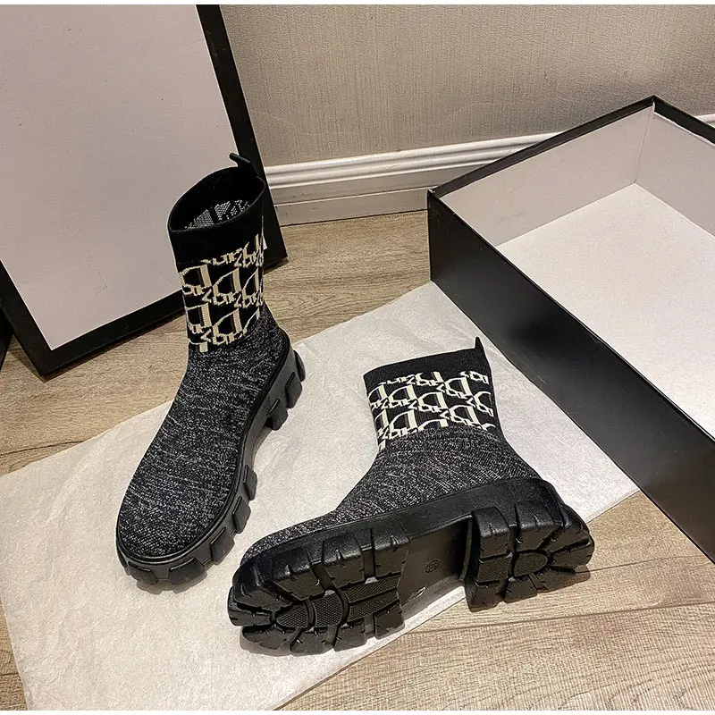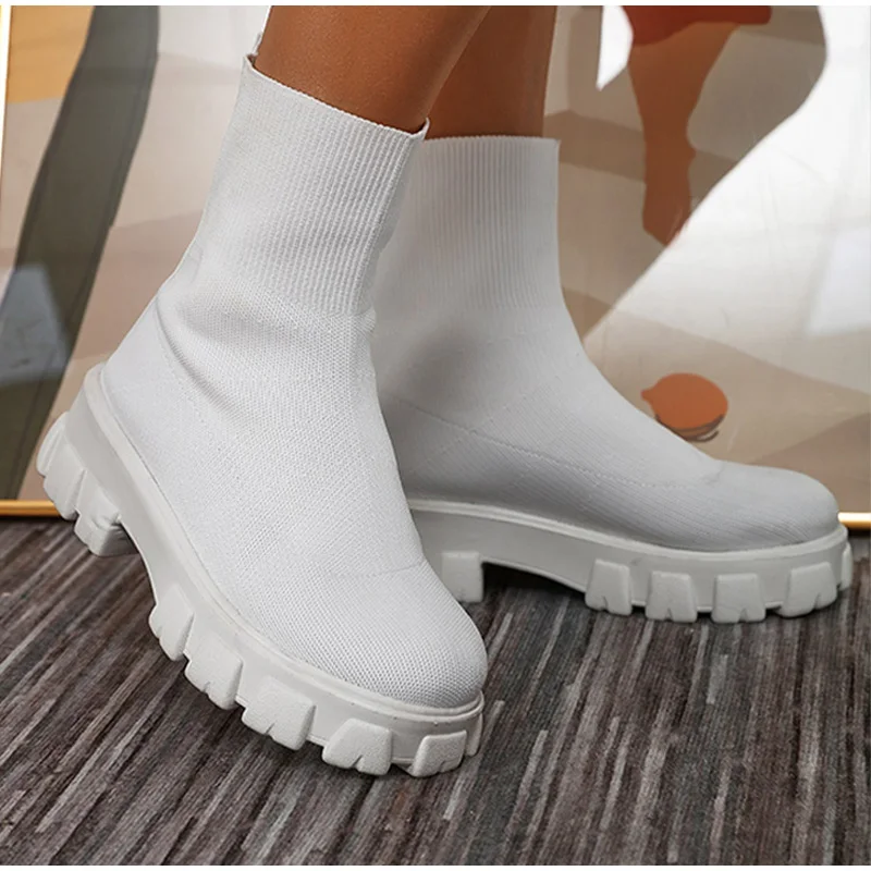 Женские ботинки-носки, вязаные осенние короткие ботинки без шнуровки, Модная комфортная обувь на толстой платформе, женская обувь, ботильоны 2021