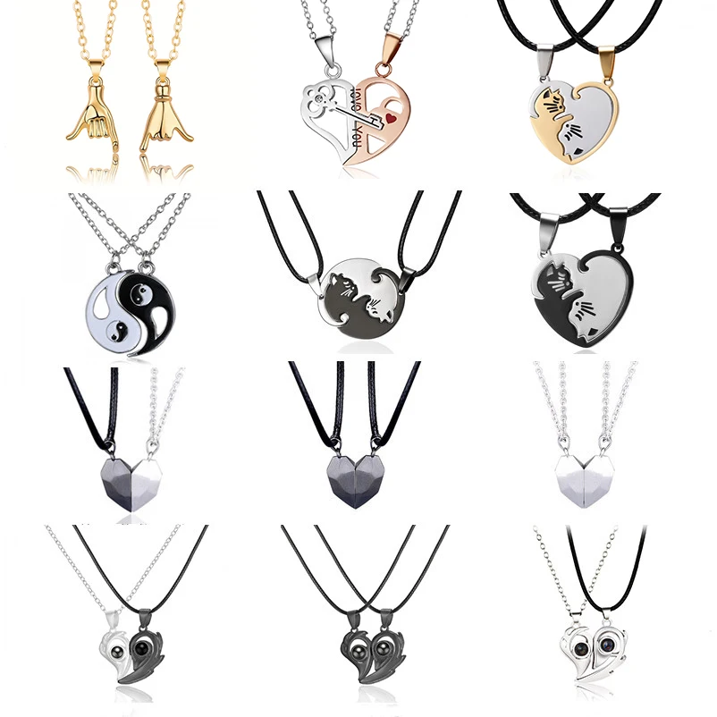 Ожерелье для пар, 2 шт.компл., колье с круглым сердцем, кошкой, брелком, колье для семьи, влюбленных, дружба, ювелирные изделия, подарок