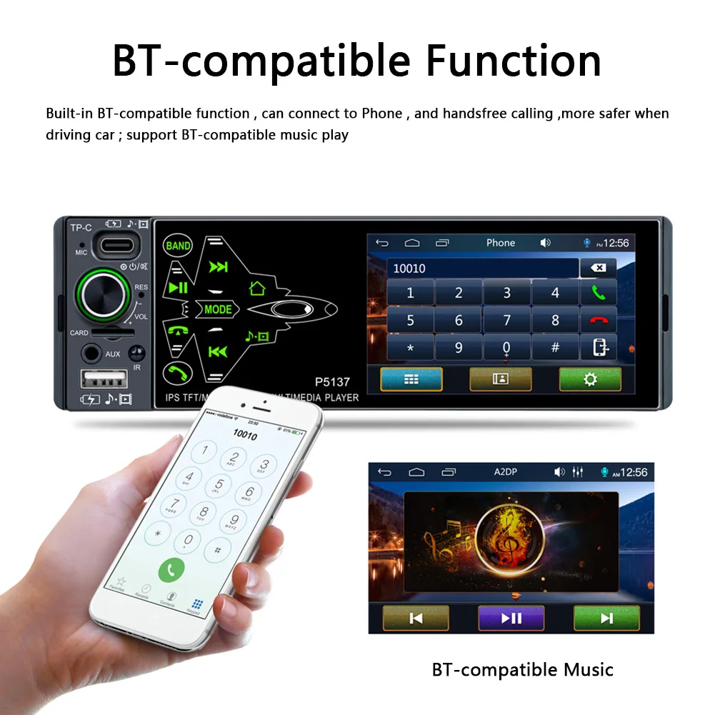 Автомагнитола 1 Din стерео MP5 MP3 Bluetooth-совместимая 50 Вт * 4 аудио FM USB Type-C экран 3,8 дюйма управление рулевым колесом заднего вида