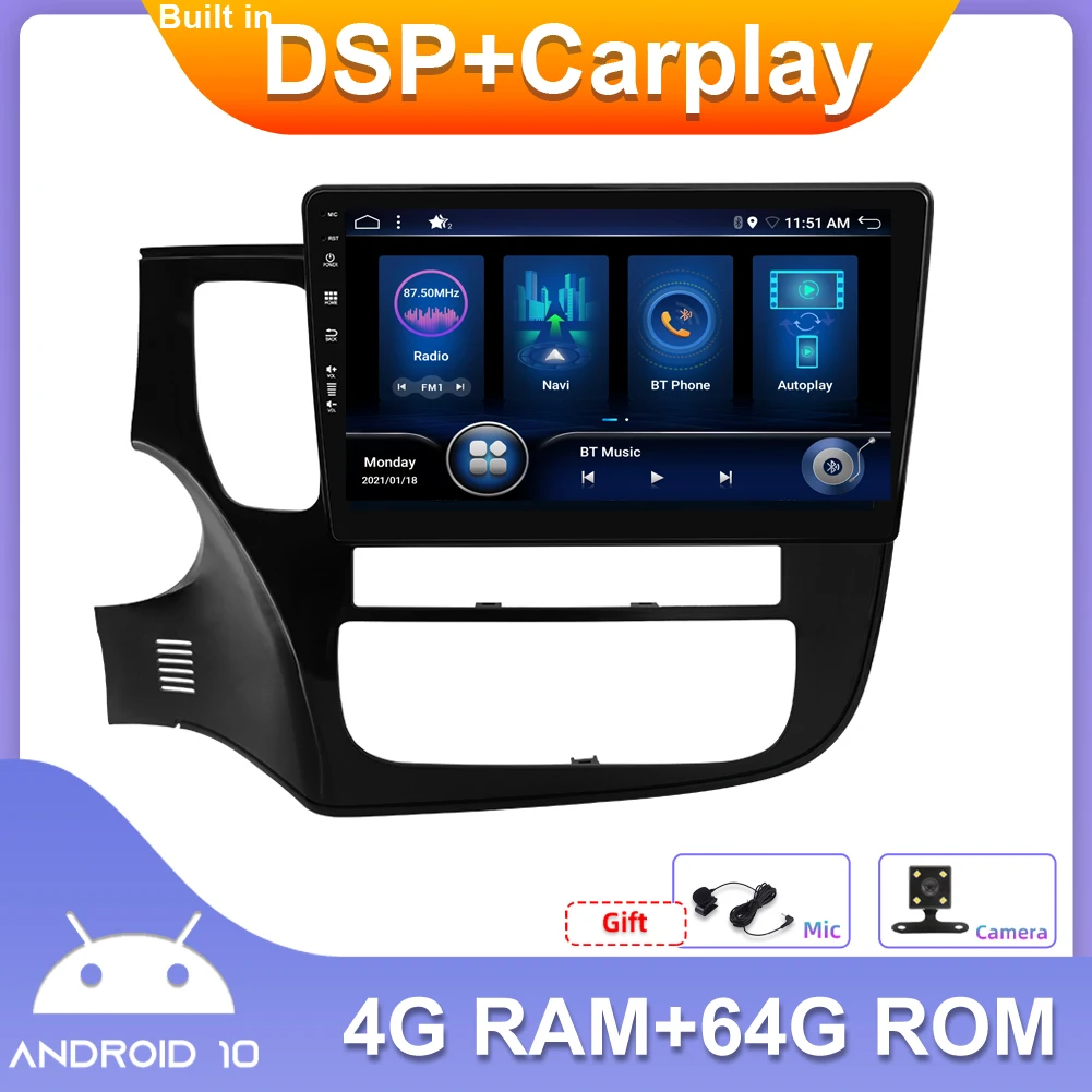Автомобильный мультимедийный видеопроигрыватель 2 Din 10 "Android 2 Din с GPS-навигацией для Mitsubishi Outlander 2017-2020 DSP Carplay