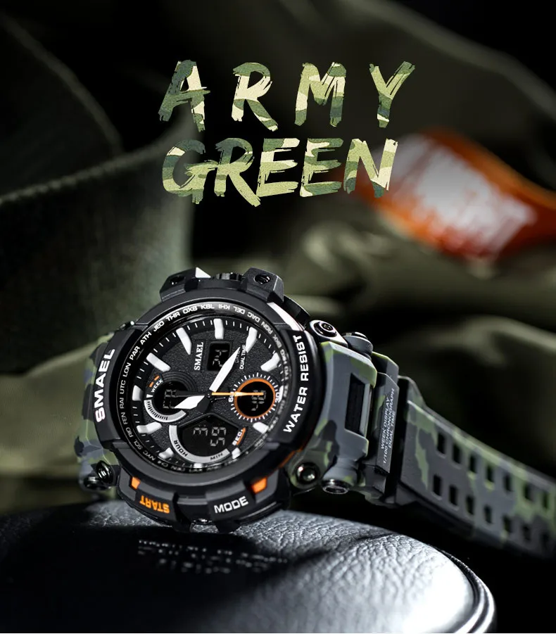 Мужские камуфляжные военные часы SMAEL, водонепроницаемые спортивны...