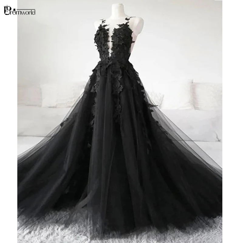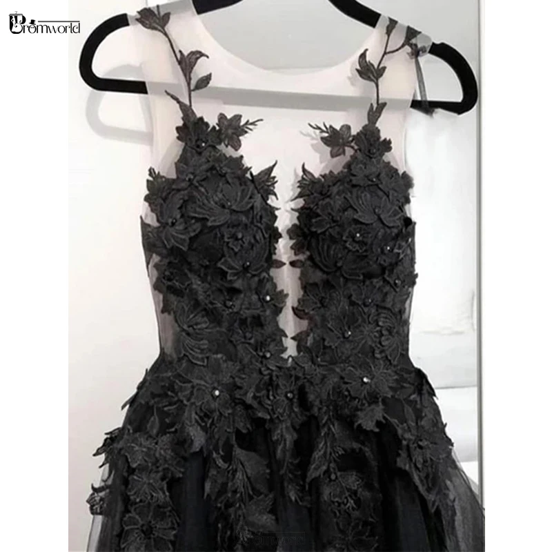 Женское длинное вечернее платье, черное фатиновое платье-трапеция с цветочным кружевом, платье для выпускного вечера, 2021