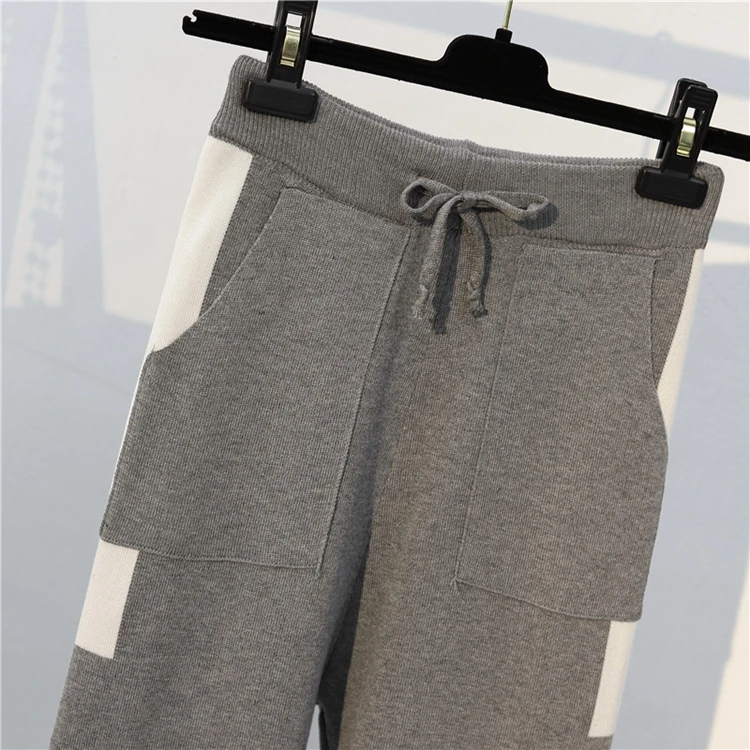 Женский трикотажный спортивный костюм, комплект из 2 предметов, пуловер, свитер и брюки для бега с морковкой, новинка, осенне-зимние свободные женские свитера, костюм