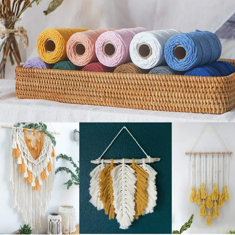 Шнур для макраме из 100% хлопка, 3 мм, цветной шнур, витая нить для...