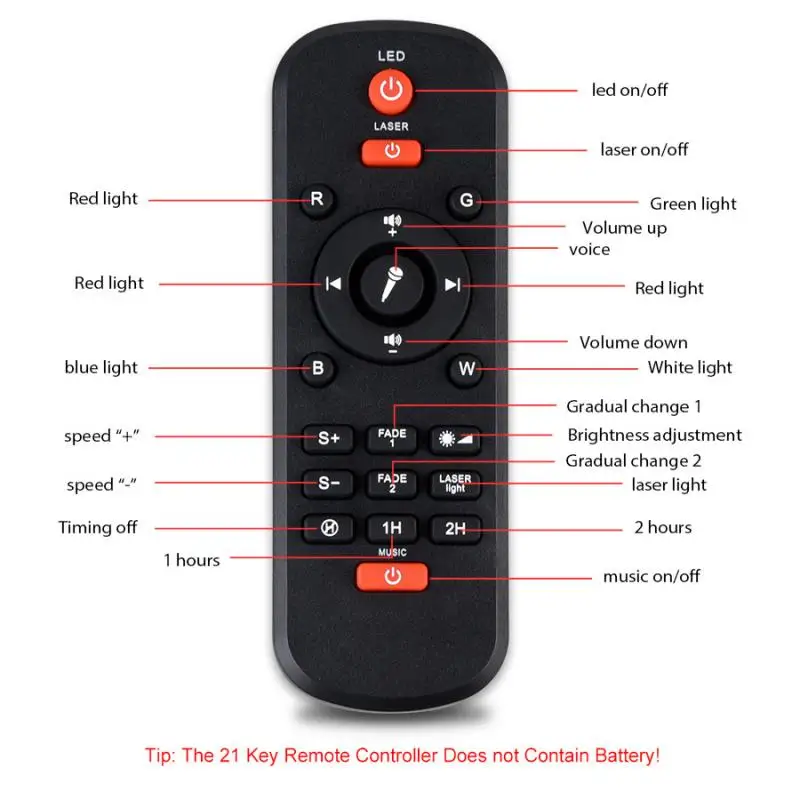 Описание продукта: Этот продукт представляет собой четырехцветный светильник с водяными знаками и зеленый лазер. Водяной знак имеет четыре цвета: красный, белый, синий и зеленый. Цвет лазера зеленый. Пульт дистанционного управления может управлять цветом водяных знаков, скоростью водяных знаков и режимом водяных знаков. Режим Bluetooth, водяной знак с одним контролем, лазерный одинарный контроль, яркость, управление музыкой, управление звуком, режим выбора, Функция синхронизации, переключатель, любой мобильный телефон или другое устройство могут быть подключены при включении Bluetooth, без проверки.