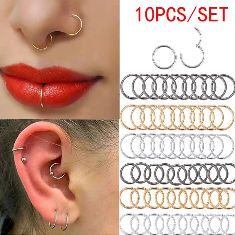 Кольца в носу из титановой перегородки для пирсинга, кольца унисекс с откидным сегментом, для ношения в носу, Helix, пирсинга, ювелирные изделия для тела, 510 шт.