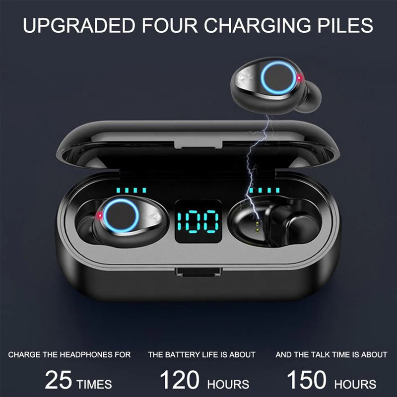 Беспроводные наушники F9, TWS мини-наушники-вкладыши 5,0, Спортивная игровая гарнитура для бега, телефоны с HD-вызовом светодиодный ным дисплеем питания