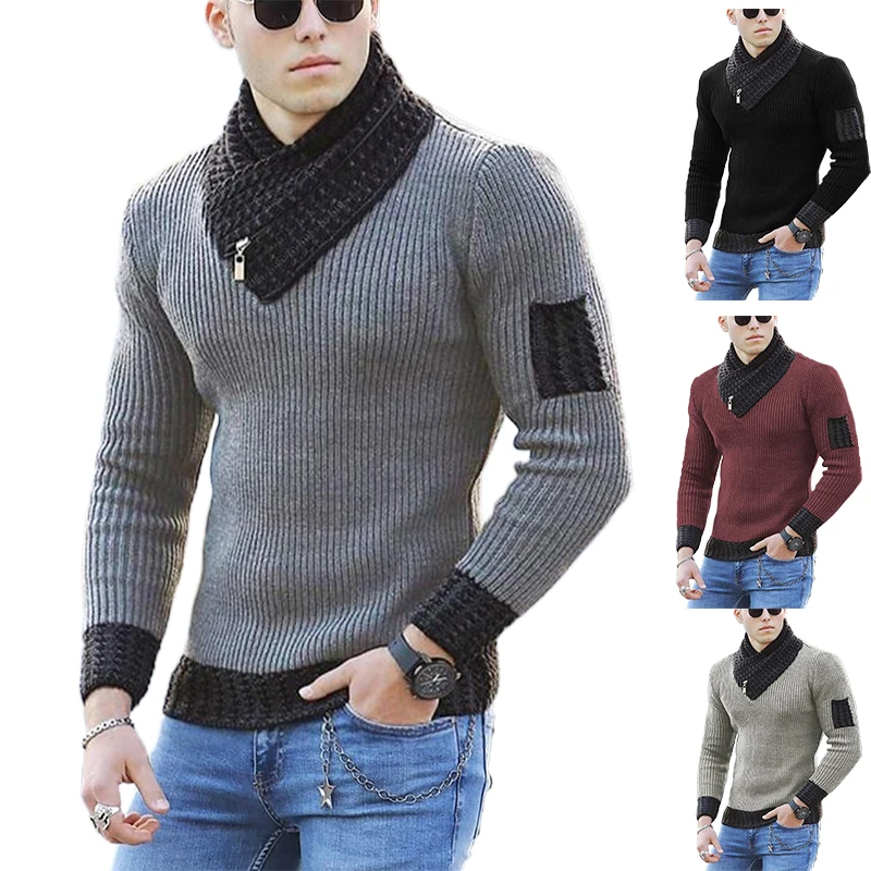 Мужской свитер из смешанного волокна, вязаный пуловер, шарф, воротник, зимний свитер, Мужская одежда, повседневный Модный пуловер с длинным рукавом, хеджирование