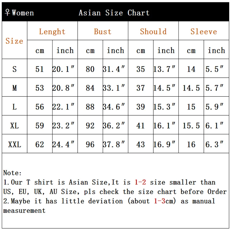 Наши футболки Азиатский размер , Это о 1-2 Размер s меньше, чем размер США, ЕС, Великобритании, Австралии, пожалуйста, проверьте таблицу размеров перед заказом.