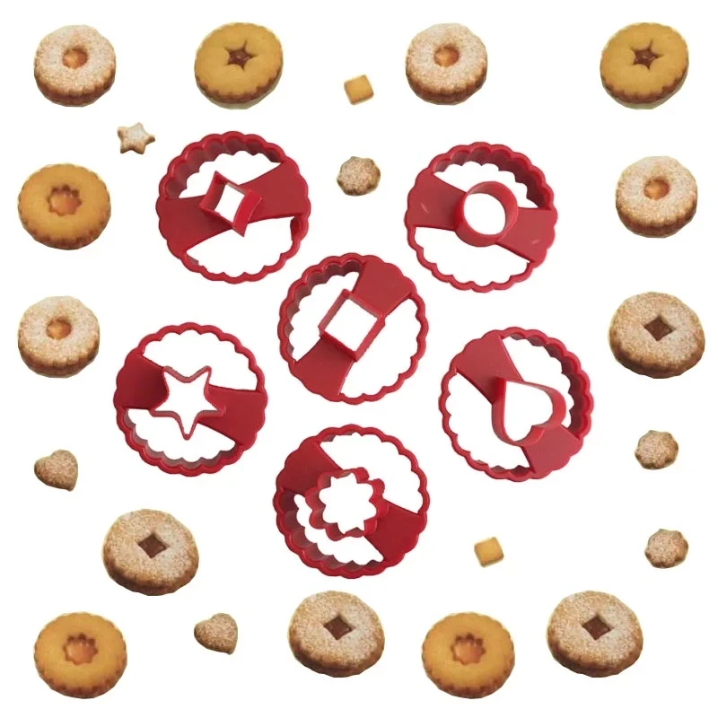 Характеристика: Материал: полипропилен Размеры: диаметр 5,5-6 см Эти продукты являются отличным дополнением к любой кухне. 6 резцов для печенья linzer помогут вам создать печенье в хлебопекарном стиле дома. Это традиционные linzer формы, отличающиеся дизайном двойного назначения. Двухсторонний дизайн: бриллианты, сердца, цветы, звезды, круги и квадраты И предоставляет различные формы для дизайна печенья. Эти формочки для печенья безопасны в посудомоечной машине, набор из шести